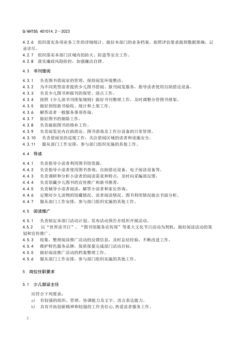 Q/AHTSG 401014.2-2023 少儿部岗位规范 第2部分:岗位要求